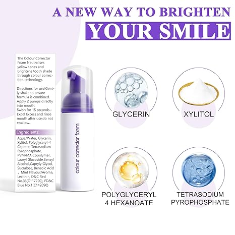 - Excellent Whitening Effect: Purple whitening foam toothpaste effectively reduces tooth pigmentation through color correction technology. Natural extracts of purple dye effectively remove yellow or dull appearance from teeth, making them appear brighter and whiter